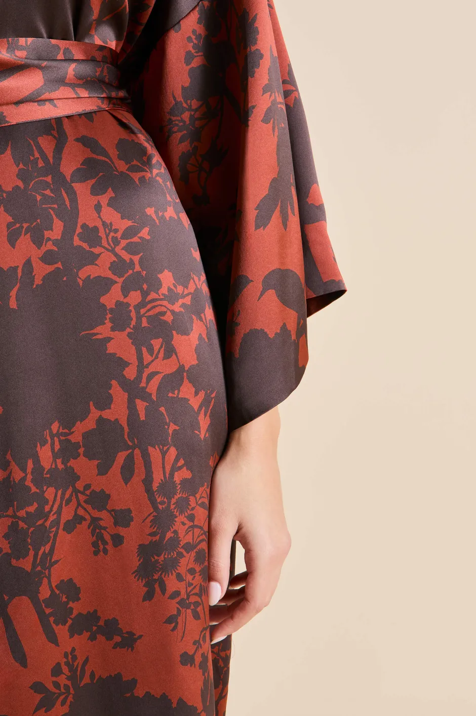 For a more subdued spin on our famously maximalist motifs, turn to the Queenie Lalanne. She’s a new-season rendition of our A-list-approved kimono-style robe, complete with a sash belt, and is adorned with burnout florals that were first rendered by hand in our London atelier before being printed onto 19-momme silk.