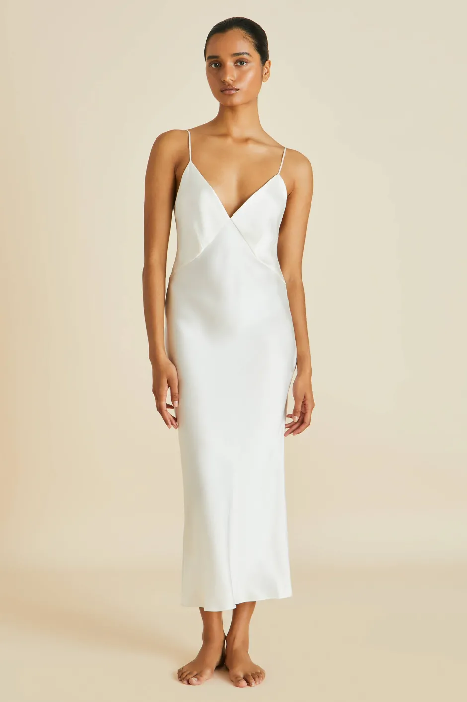 Inspired by the slip dresses of the 90s, Olivia von Halle creates a luxury spin on the classic silk slip dress. In luxurious ivory silk, this slip dress is elegantly cut to create the most versatile slip for a bridal do, or any evening occasion. The Issa in ivory is now lined for extra coverage.