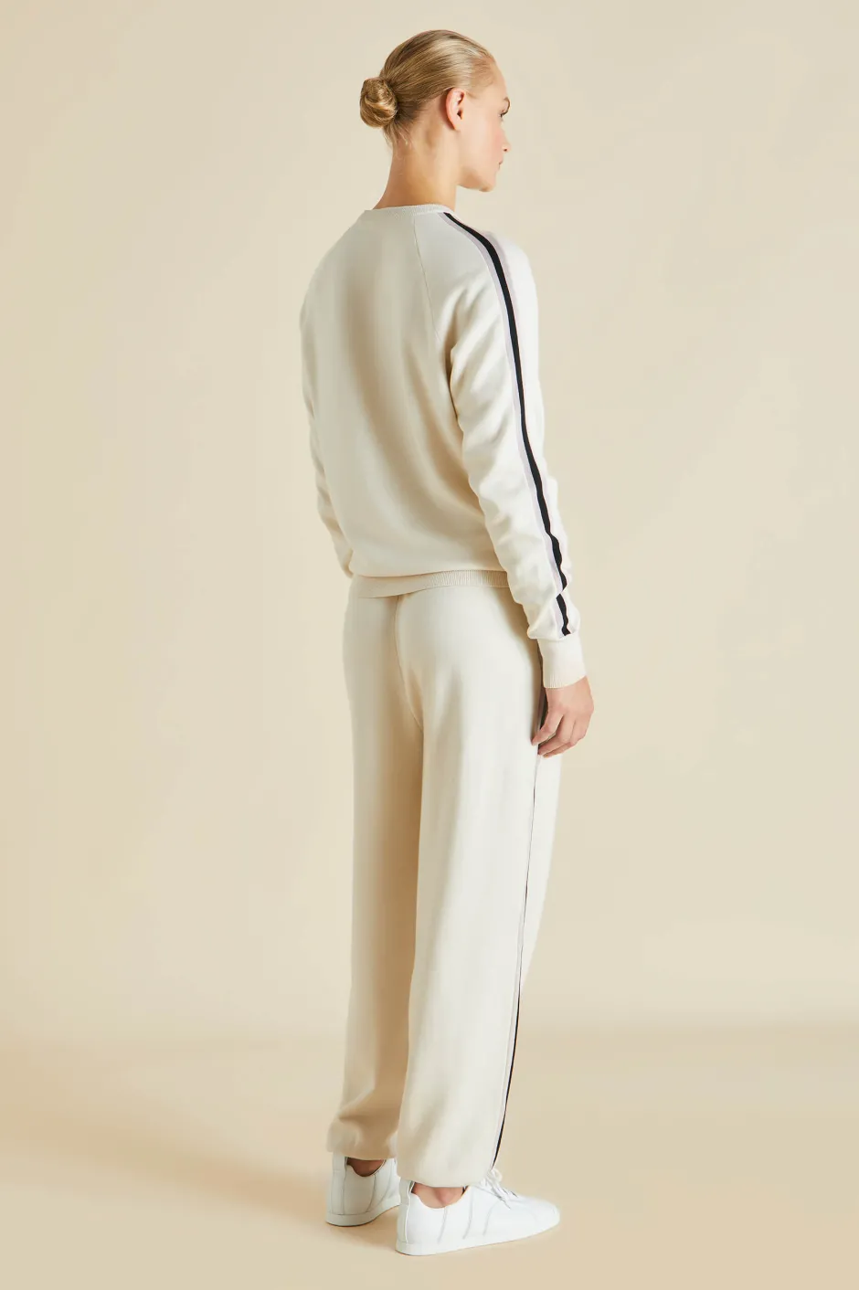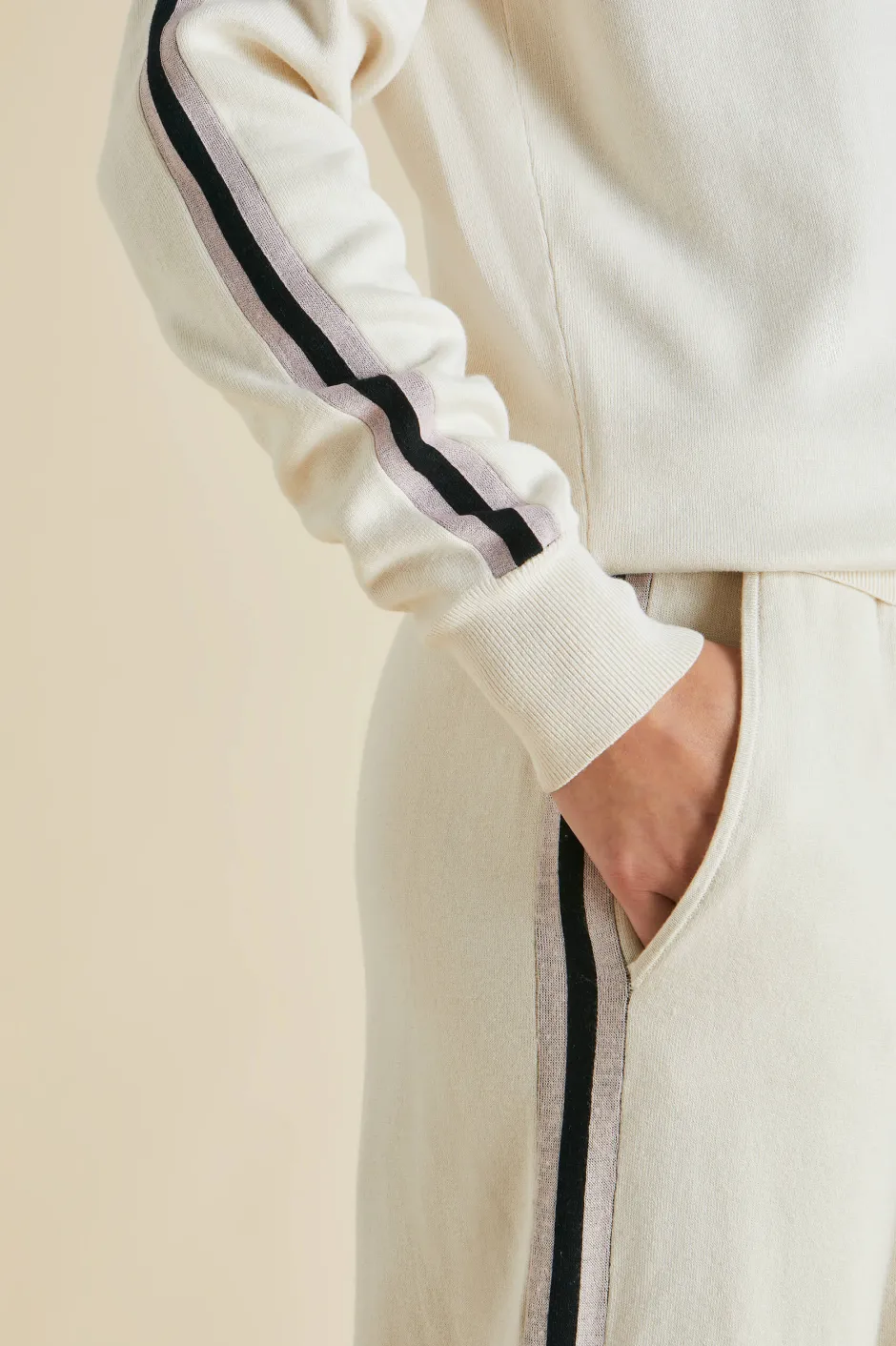 Trims: contrast side stripe detail in metallic Pink and Jet Black lurex