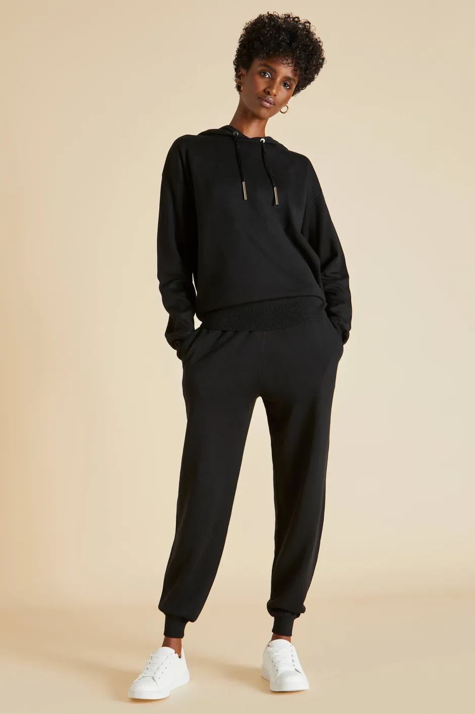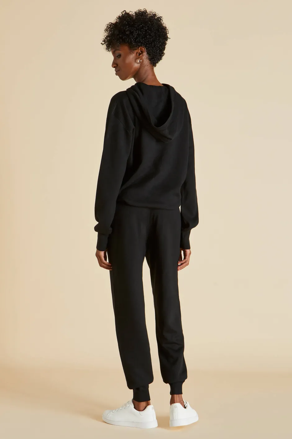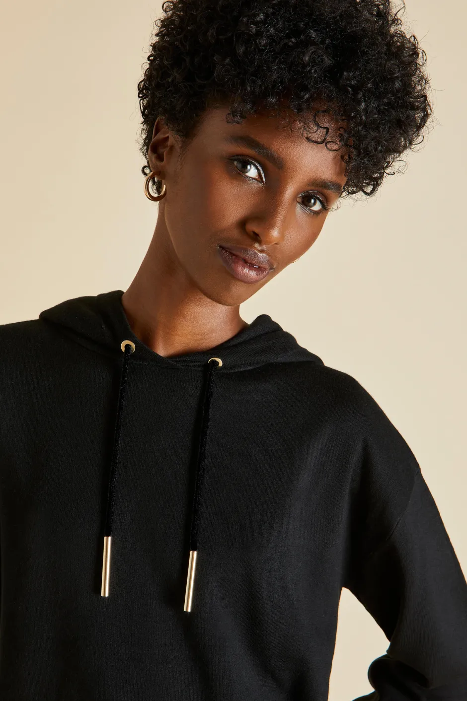 Cut from the softest, pure silk-cashmere blend, the Gia Berlin is the ultimate in luxury loungewear. Its slim silhouette with generous hood and luxe gold draw cord details create an impeccable update on the luxury tracksuit. This style and silhouette is suited to all, and does not adhere to gender boundaries.