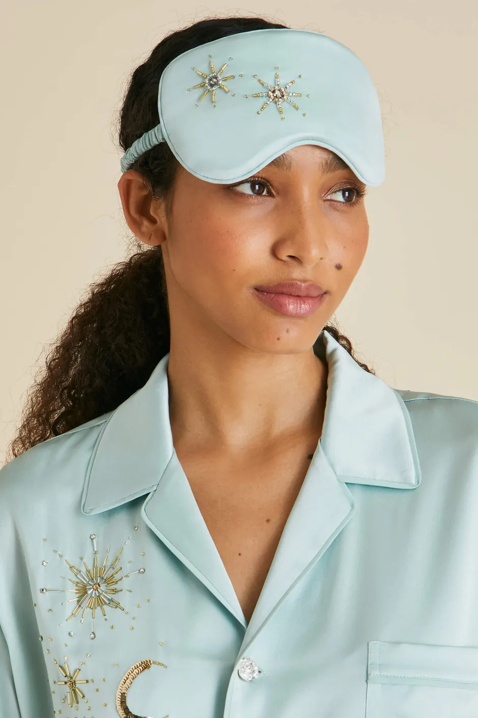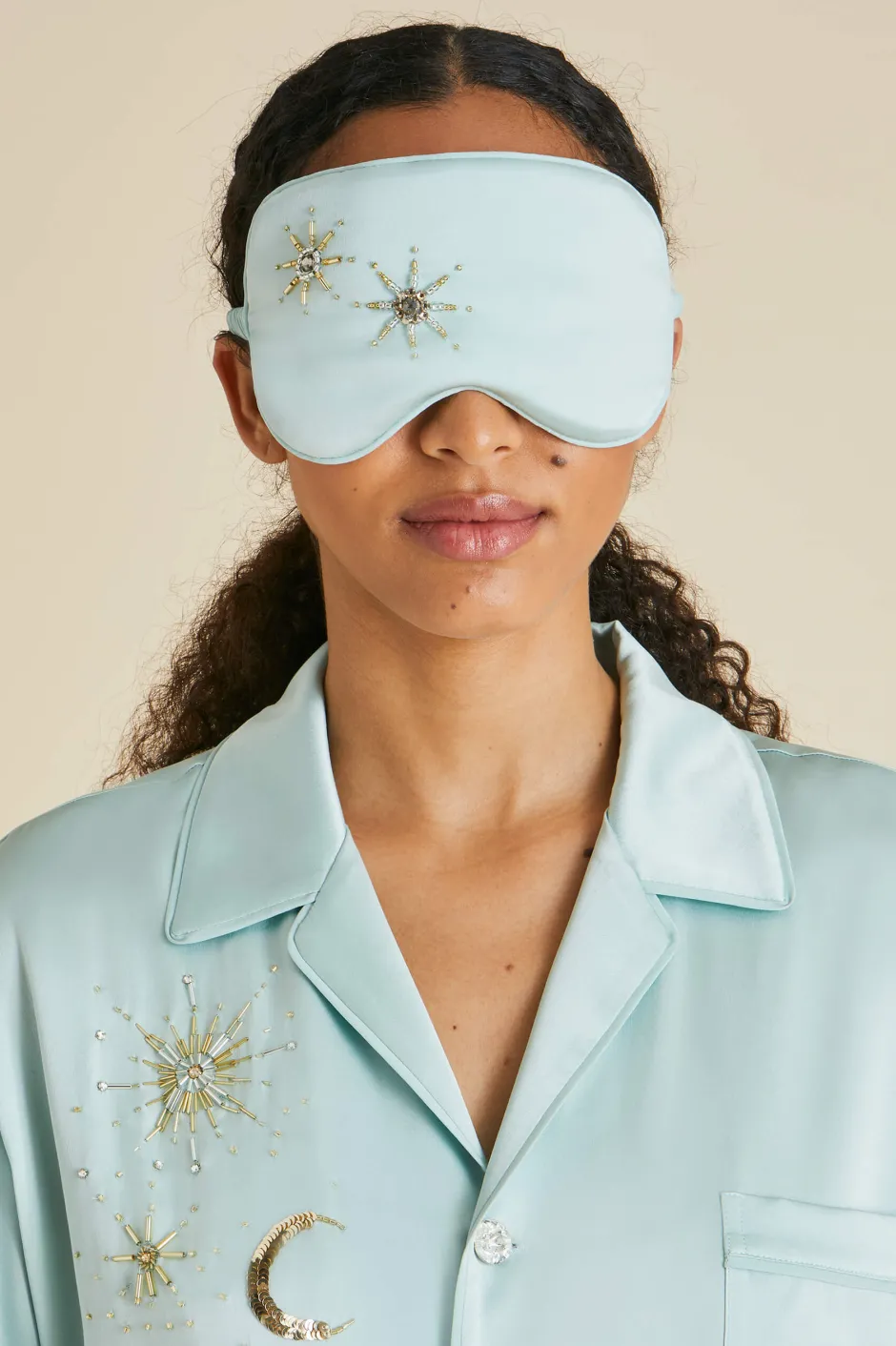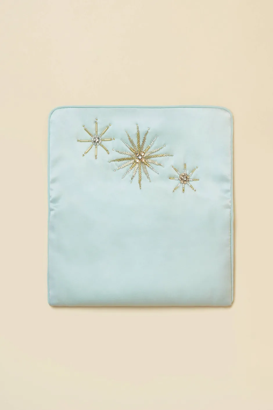 Though our embellished Audrey Incantation eye mask looks especially sublime alongside her matching Yves pajama or Vreeland dress, she’s a knockout in her own right. That’s all thanks to her dazzling aari and zardosi embellishment, which comes courtesy of time-honoured techniques by expertly trained artisans in India. Characterised by gold threadwork and nature inspired motifs, both techniques have been lovingly practised for centuries to create revered pieces for kings, queens and bridal trousseaus. Newly re-imagined this season with raw silk padding and a sumptuously soft silk clutch bag in which to store her when travelling (a show-stopping piece worthy of its own spotlight), she will elevate your sleep to dreamy new heights. Frankly, we can think of nothing chicer to slip into mid-flight.