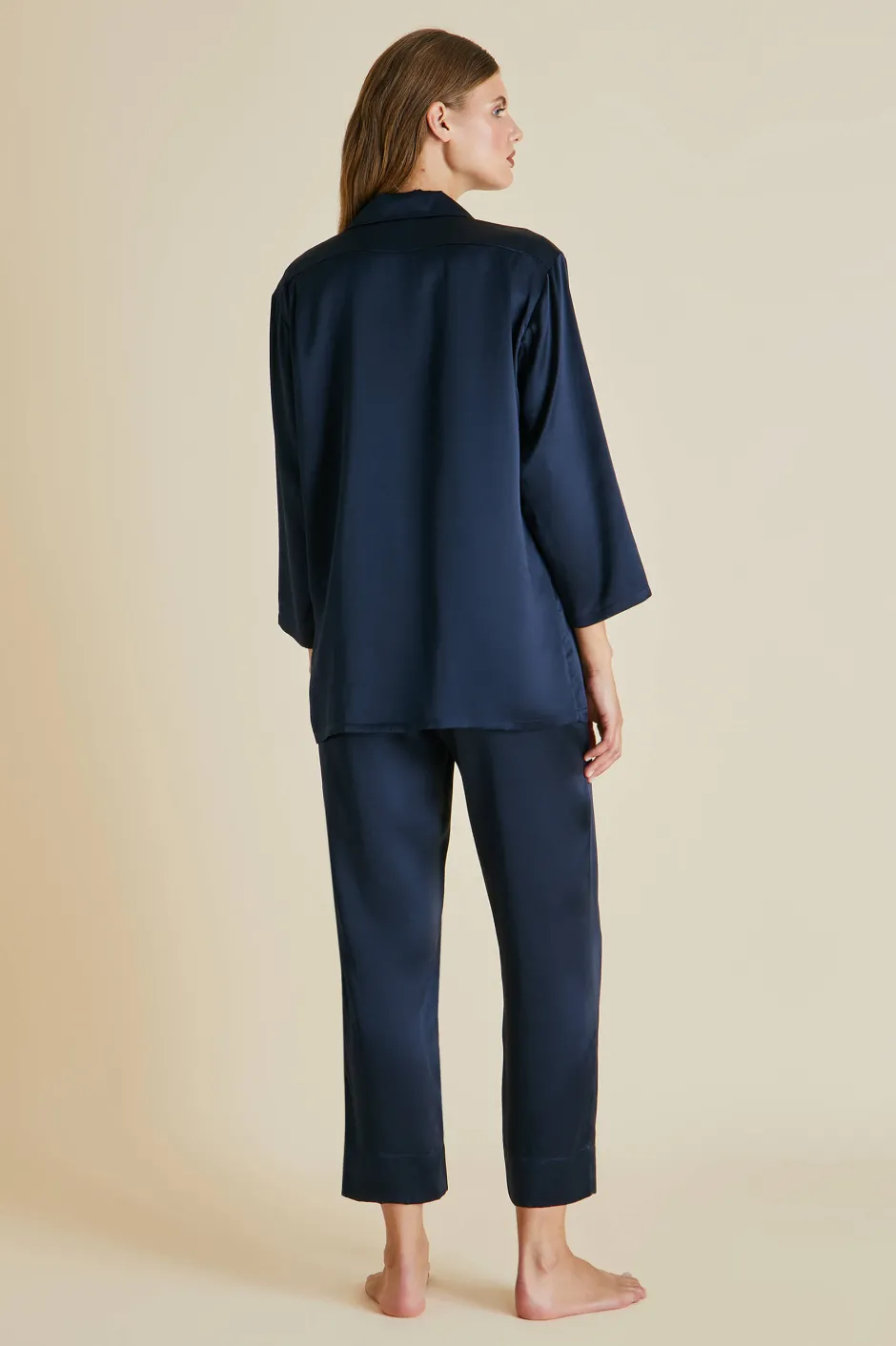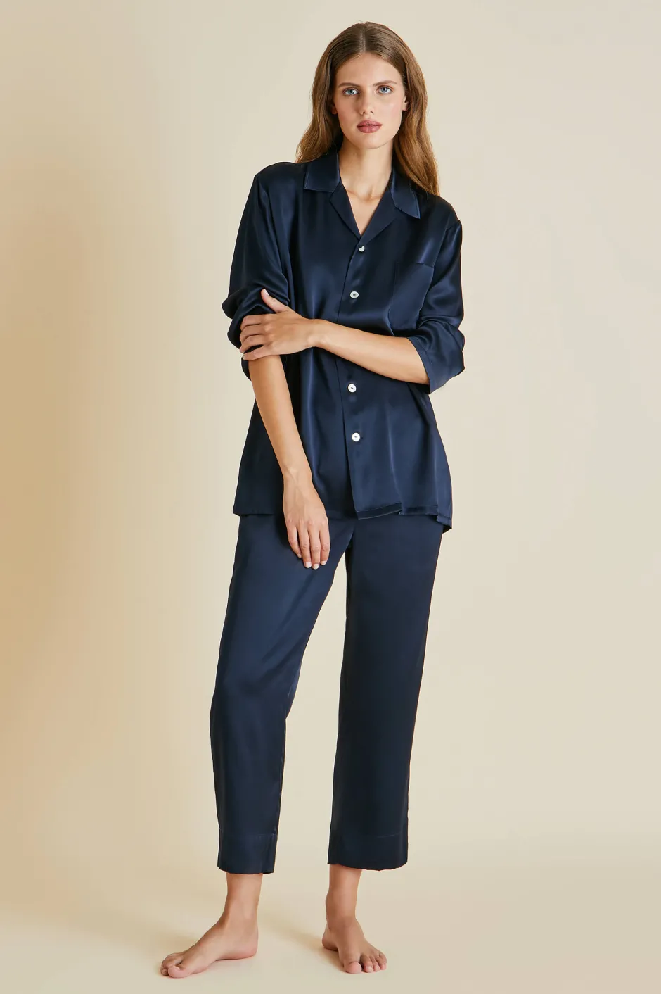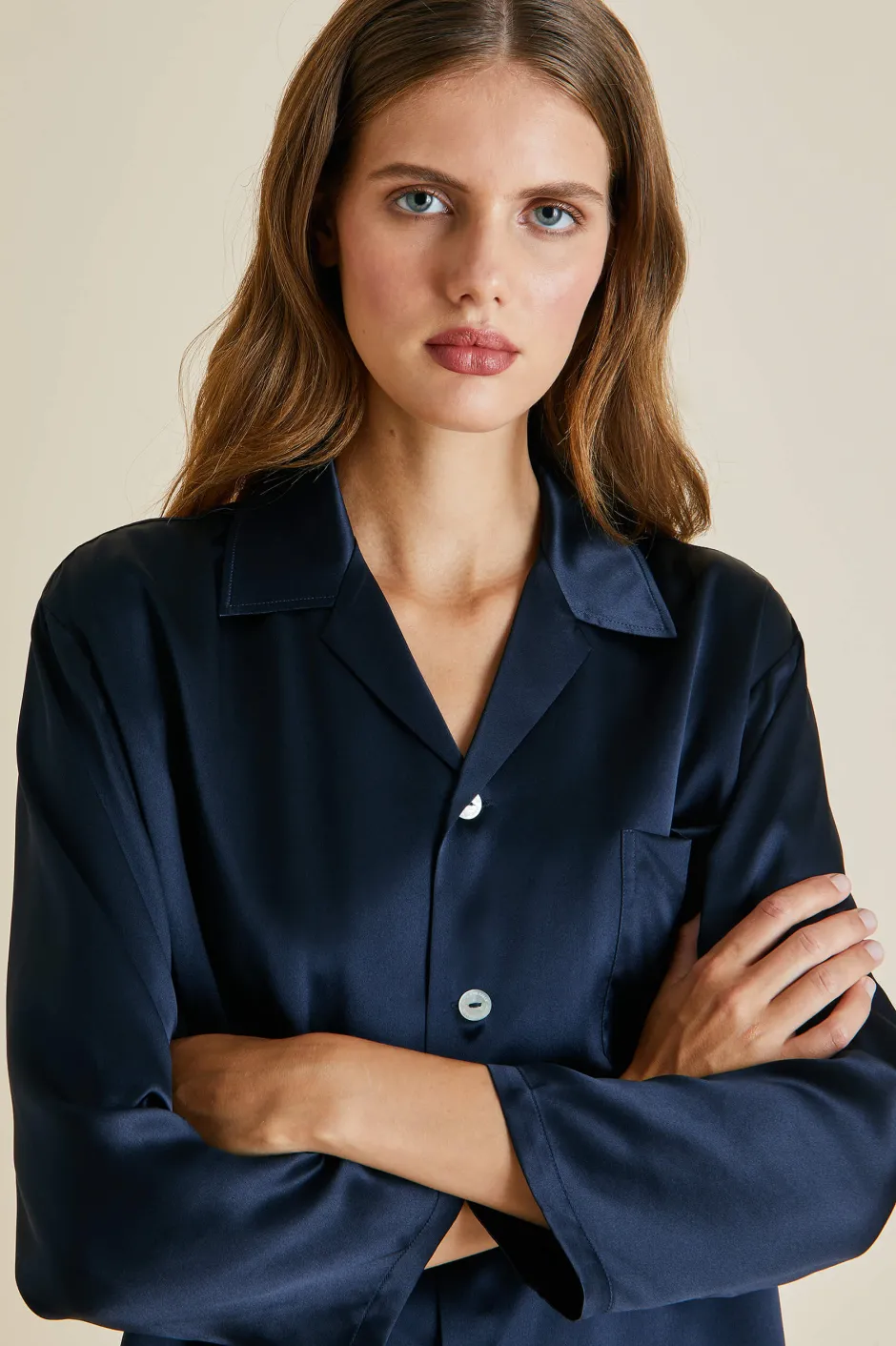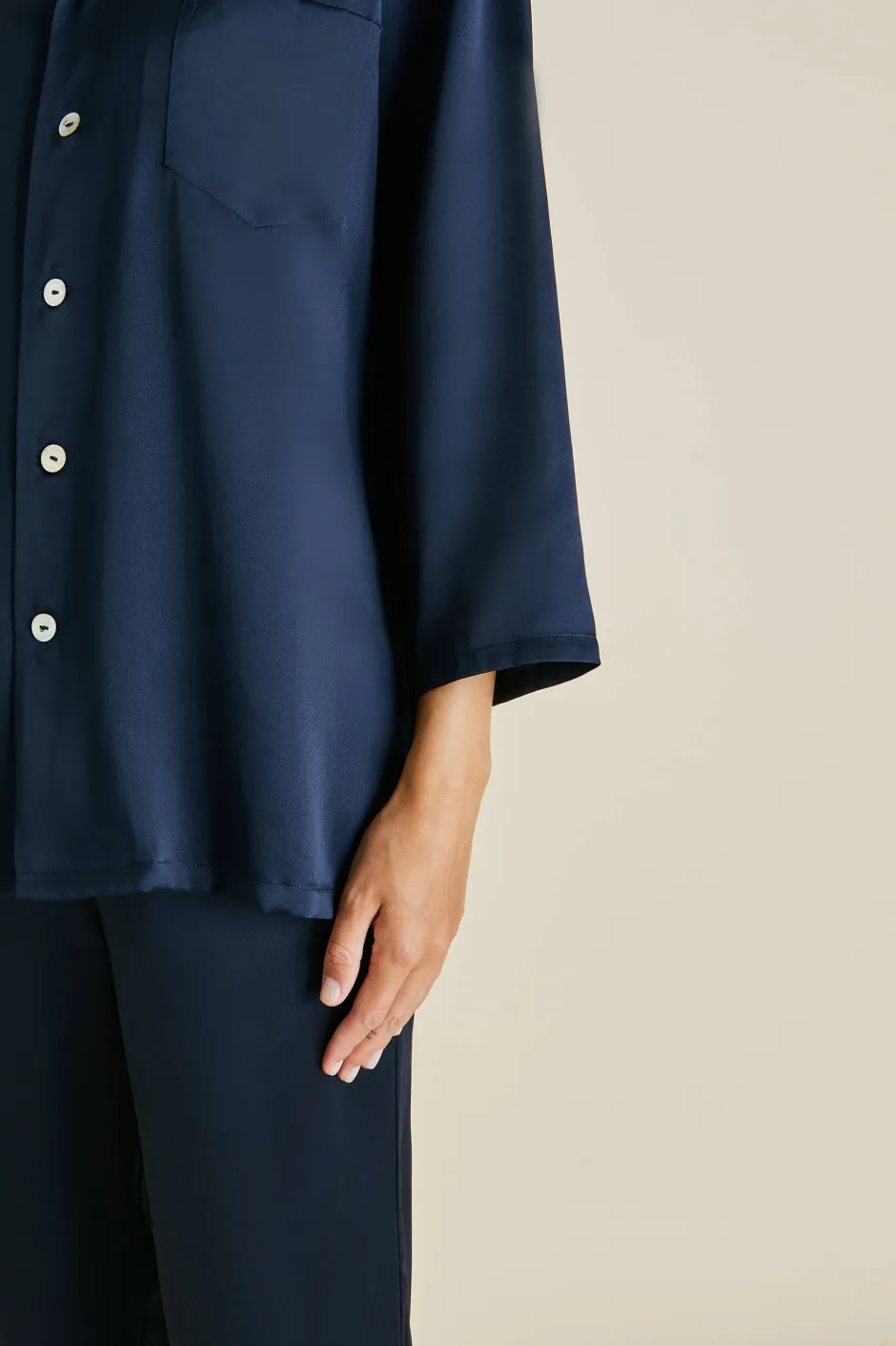 Our classic Casablanca Pajama in Navy is the perfect match for self-described minimalists who favour clean lines, boyish cuts and hushed hues. She’s comprised of a boxy, oversized shirt and relaxed-fit trouser – both crafted from our signature 19-momme silk – and is rumoured to be the at-home outfit of choice for the world’s most stylish gentlewomen.